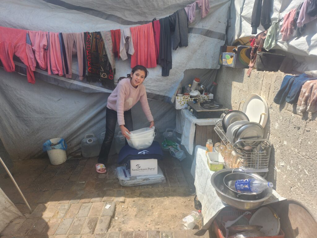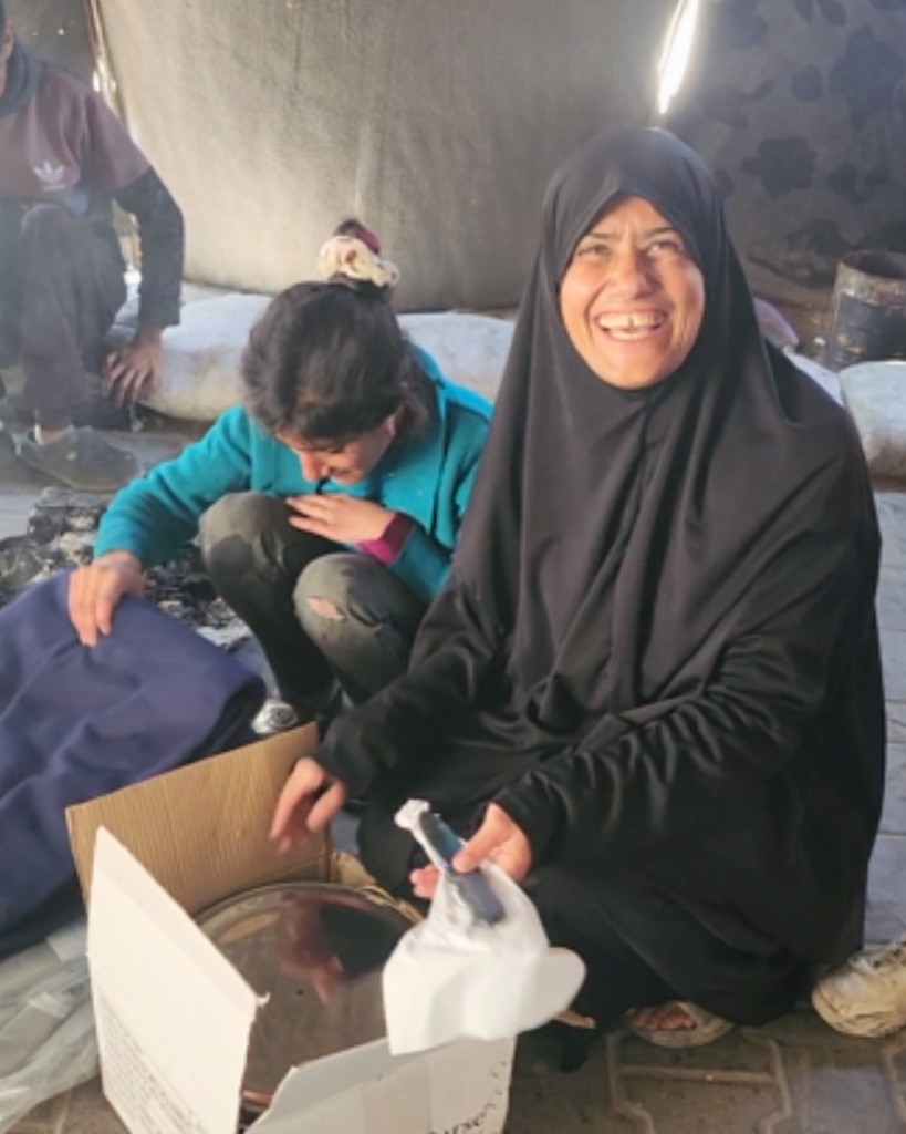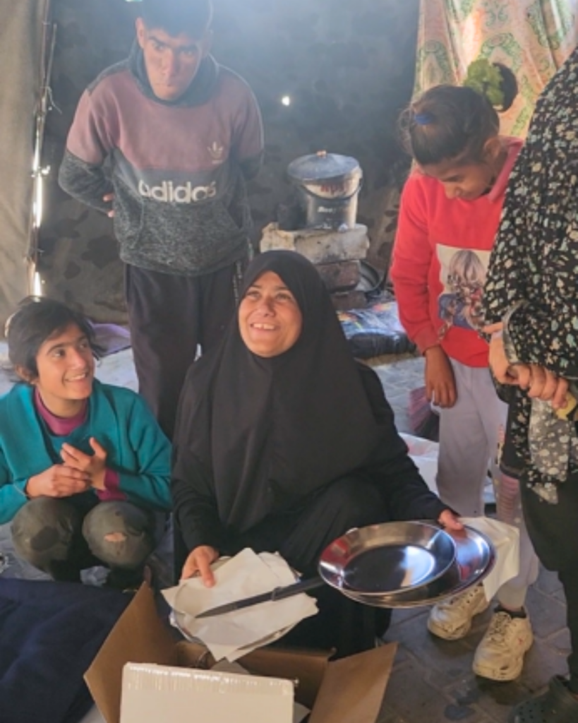 When aid arrived, Intisar carefully examined each item, thinking through how it would help her family. Looking through the kitchen set, she called out to her daughter with a smile: