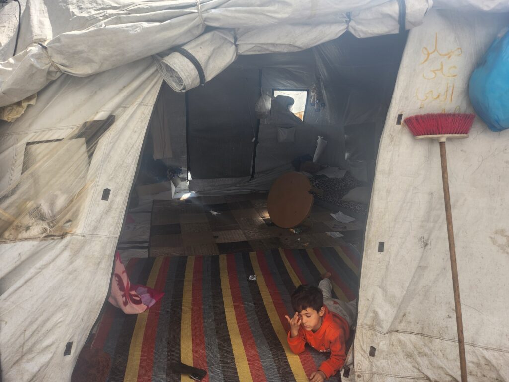 Recently, a sandstorm tore through the camp, destroying their already fragile shelter and leaving their cooking space completely exposed. Despite repeated attempts to repair it, the damage was too extensive to restore even minimal protection.