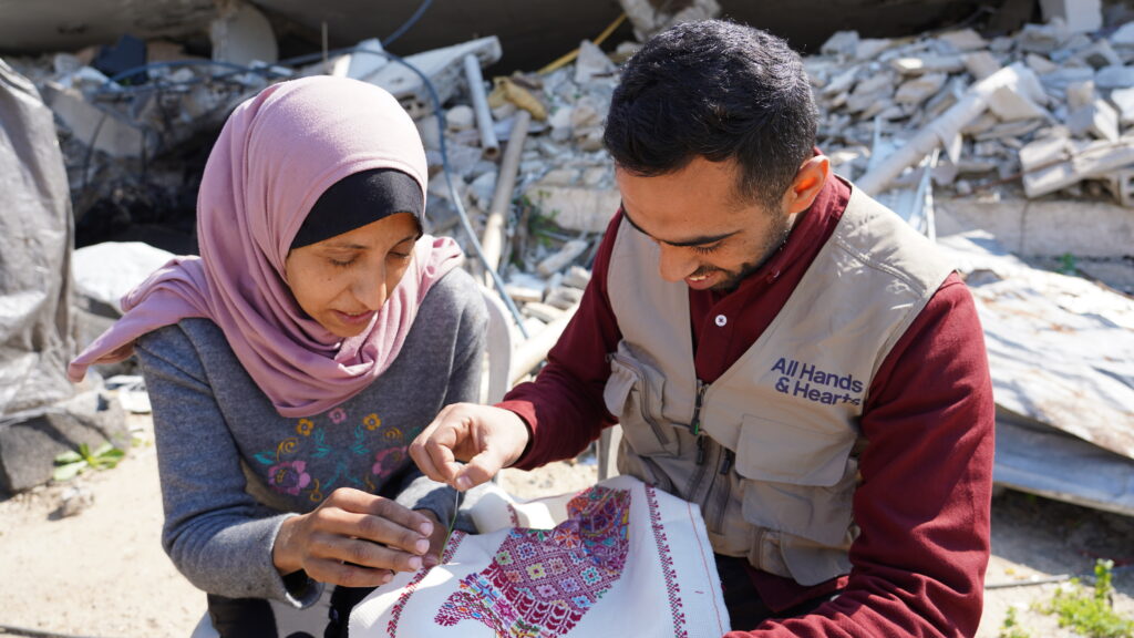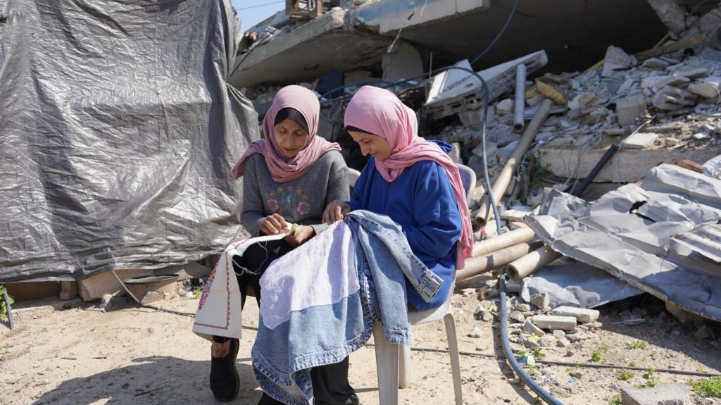 Surrounded by the rubble of their former home, the girls have started a small embroidery business called Six Flowers. Stitch by stitch, they are creating colorful designs and selling them to support their family, building both beauty and a way forward in the place where they once lost everything.