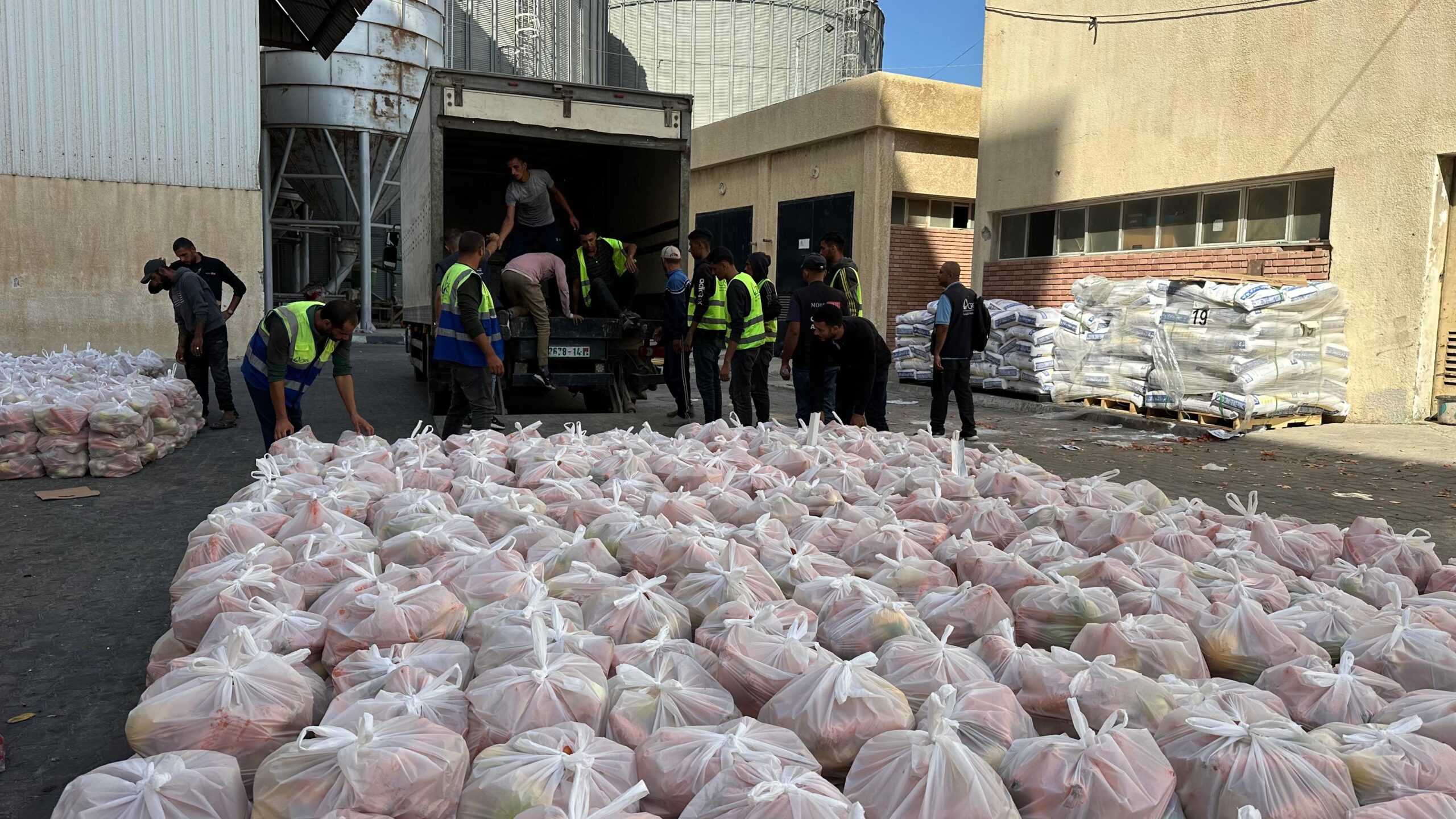 Working with our local partners in Gaza, we took the more than 60 tons of carrots, onions, potatoes, oranges and created nearly 9,000 food kits, each weighing 16 pounds.