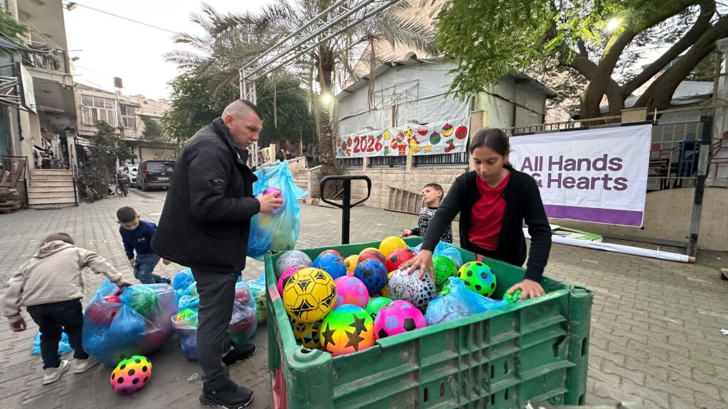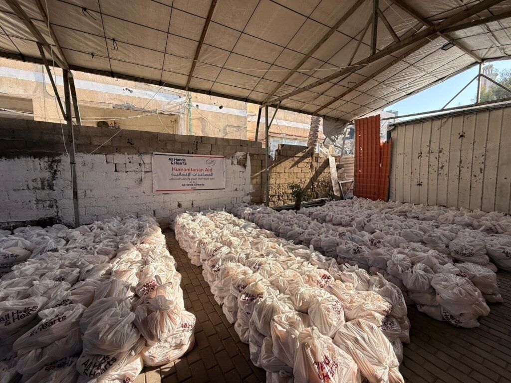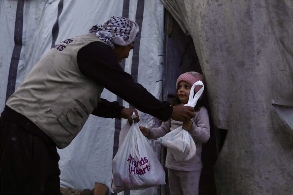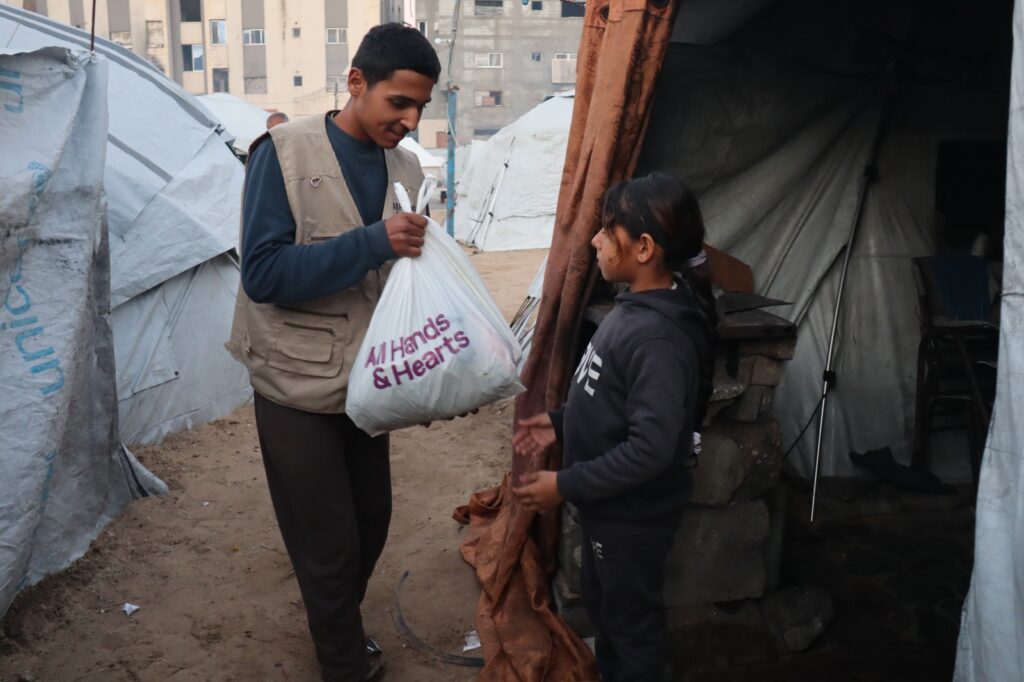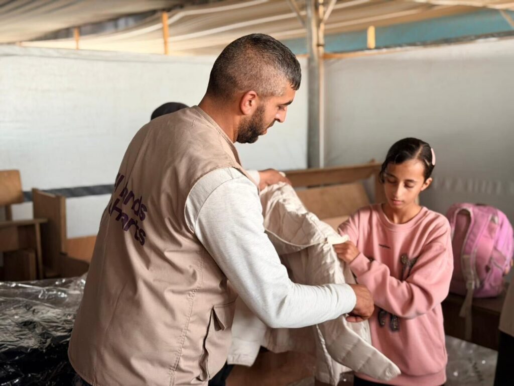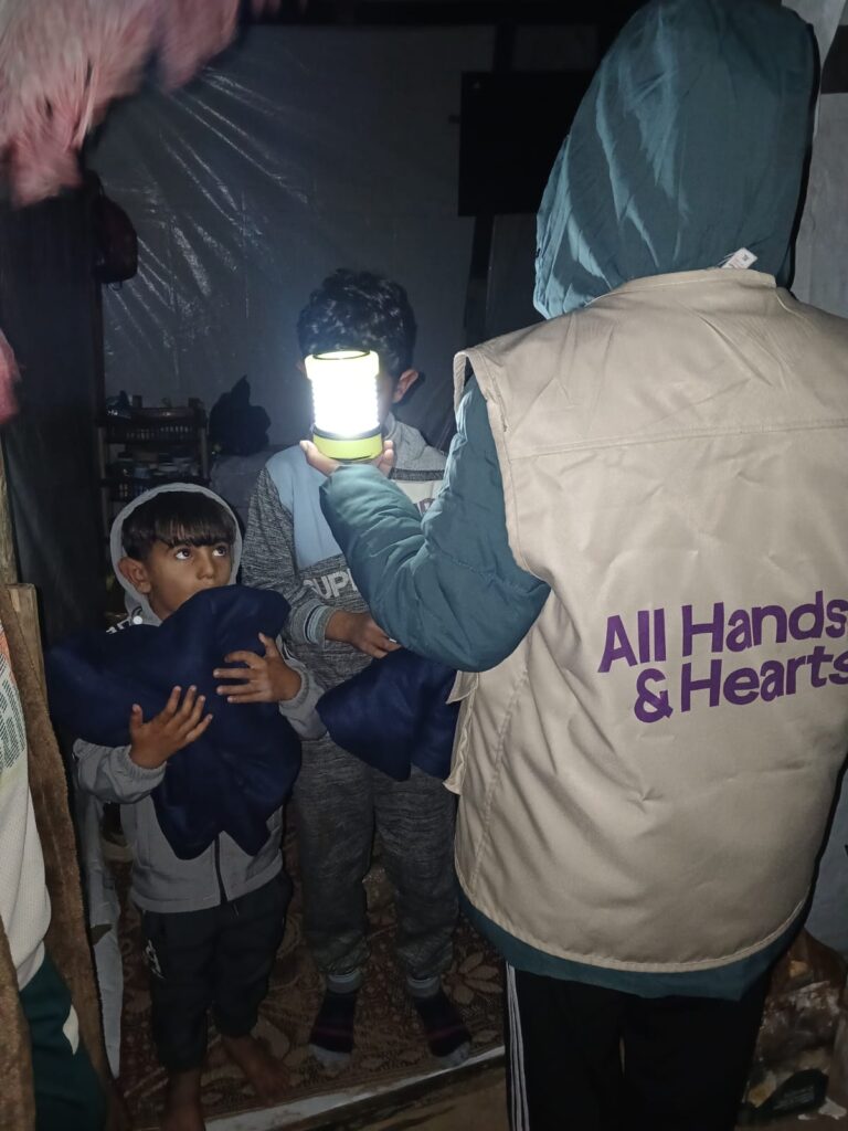 Throughout the final weeks of 2025, our team and partners in Gaza continued daily humanitarian aid distributions to ensure families were supported with fresh fruits and vegetables, hygiene supplies, warm winter clothing and blankets, shelter material for reinforcing and repairing tents, solar lamps, and more.