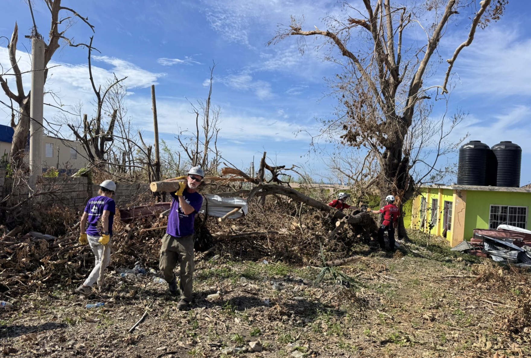 Beyond the supplies distribution, our recovery work continues on the ground. Our team is working alongside the Disaster Arborist Response Team at New Hope Church, a community living space in Morivan, Jamaica. Together, we’re clearing trees and debris left behind by the hurricane, reopening roads so trucks delivering food, water and other relief supplies can safely enter the local community.