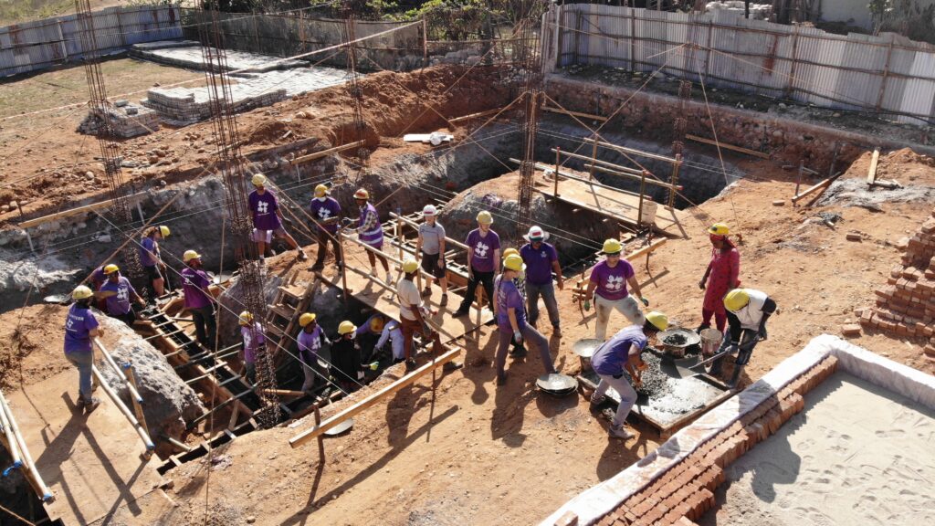Both schools’ infrastructure are being built using Compressed Stabilized Earth Brick (CSEB) technology, a method that combines locally sourced soil and sand with minimal cement to create durable, environmentally responsible bricks. CSEB construction: