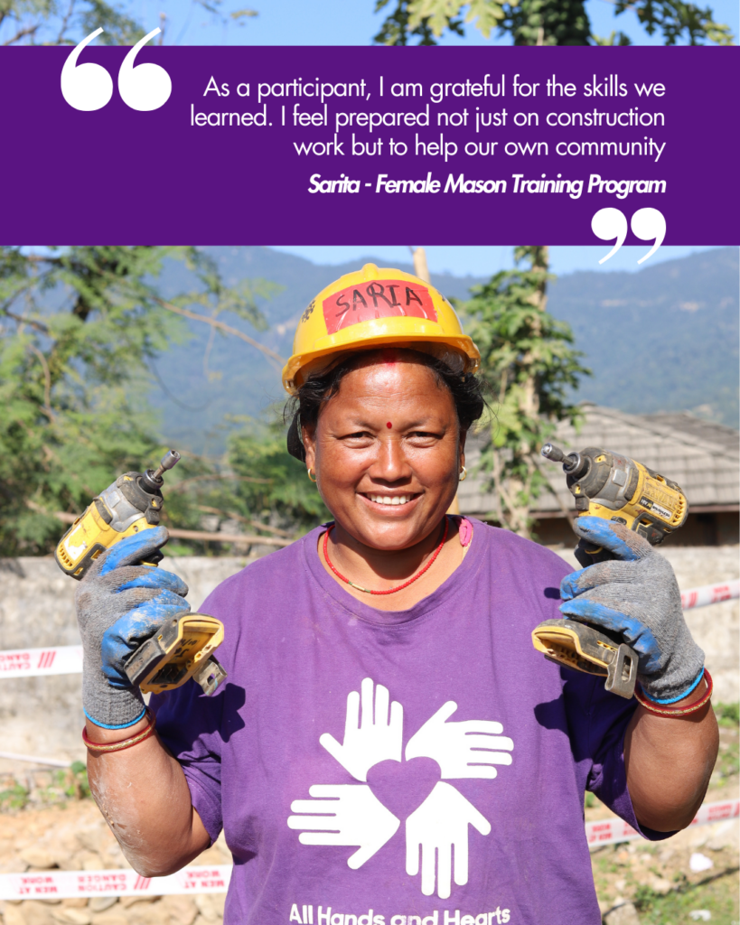These local women are gaining skills that will stay in their communities long after this school is complete, opening doors to new opportunities and helping lead stronger, safer rebuilding.