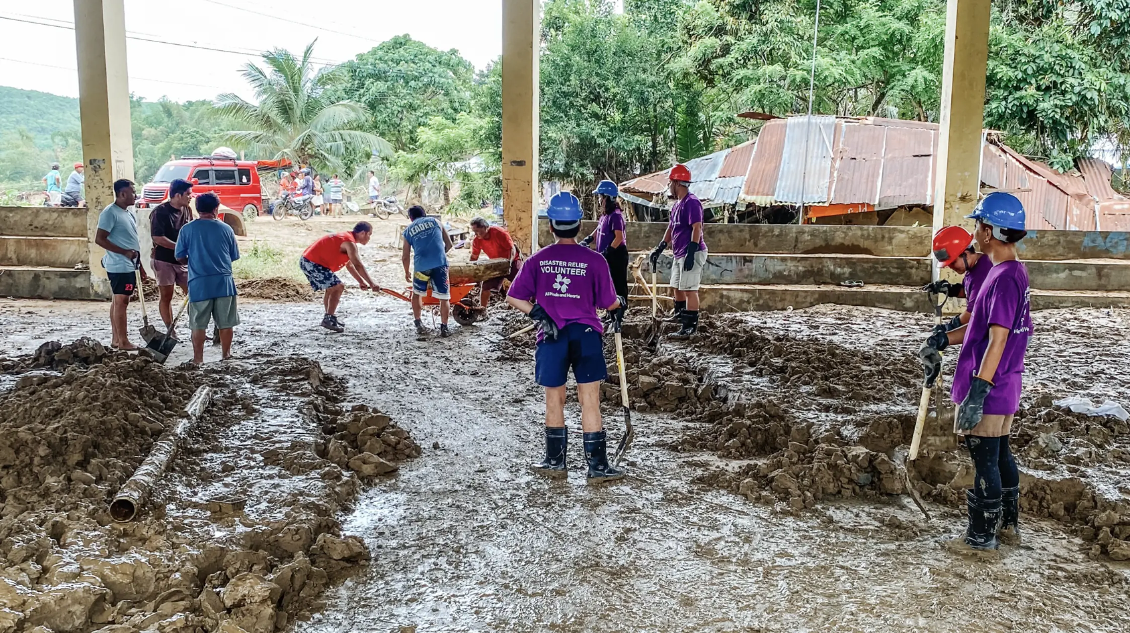 From there, the team moved to a local chapel, joining residents already hard at work shoveling mud. Together, they cleared the space completely by day’s end.
