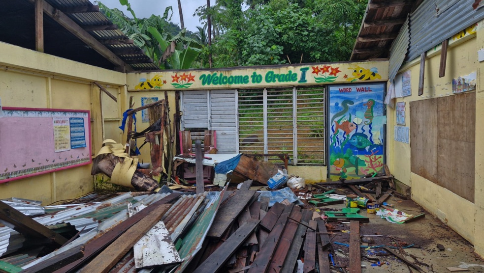 The photo above shows the school’s current conditions, captured in fall 2025. While parts of the structure are severely damaged, the other two classrooms in this building continue to be used every day.